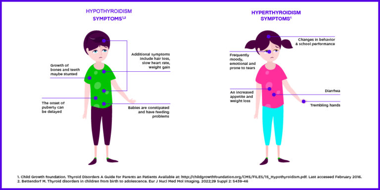 Thyroid hormones play a very important role in healthy growth and development during childhood, impacting metabolism, the nervous system and organ functions.1 Therefore, it is vital that parents understand the signs and symptoms of thyroid disorders. It is also important to remember that treatments are available and that early intervention will help to avoid any long-term issues or complications.1
