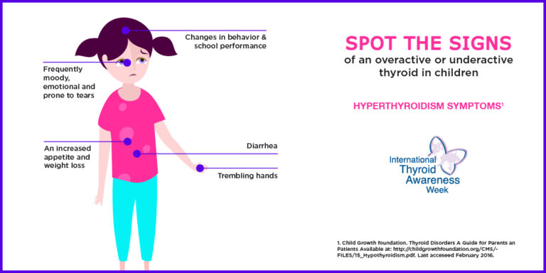 Thyroid hormones play a very important role in healthy growth and development during childhood, impacting metabolism, the nervous system and organ functions.1 Therefore, it is vital that parents understand the signs and symptoms of thyroid disorders. It is also important to remember that treatments are available and that early intervention will help to avoid any long-term issues or complications.1